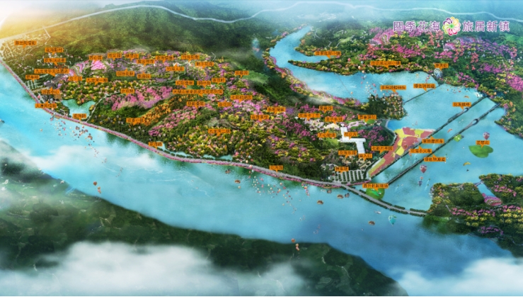 “四季花!痹谠忌鷳B與自然美學相結合的前提下,將荒山荒田開發建設成為花海觀光、農耕體驗、休閑娛樂、旅居度假、禪修養生等五大功能區,使“四季花海”一躍成為華中地區第一個山水花泉完美結合的四季賞花旅居度假地。