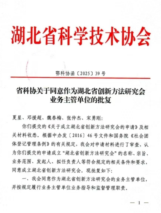 湖北省創(chuàng)新方法研究會(huì)9月27日在漢成立